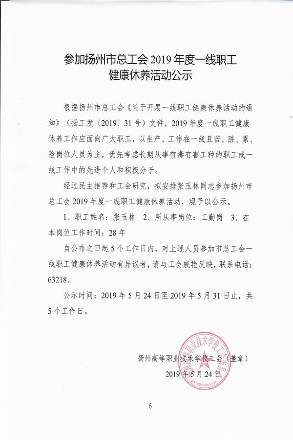 参加扬州市总工会2019年度一线职工健康修养活动公示