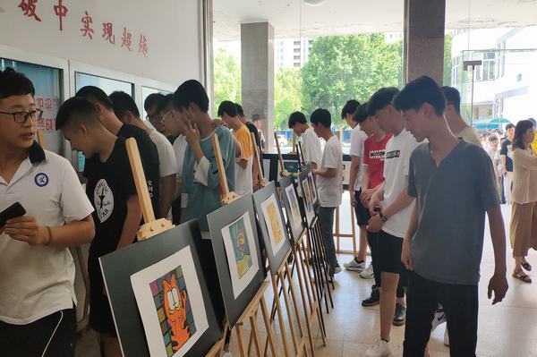 李翔宇宣布展会开幕,学生们有序进入展厅参观。一幅幅精美的作品呈现在眼前,作品题材丰富,形式多样,色彩亮丽,细腻生动,表现手法灵活多样,充分展现了建筑学子热爱生活、积极进取的精神面貌。画展引发了强烈的反响,吸引了众多师生前来观摩、欣赏和品评。
