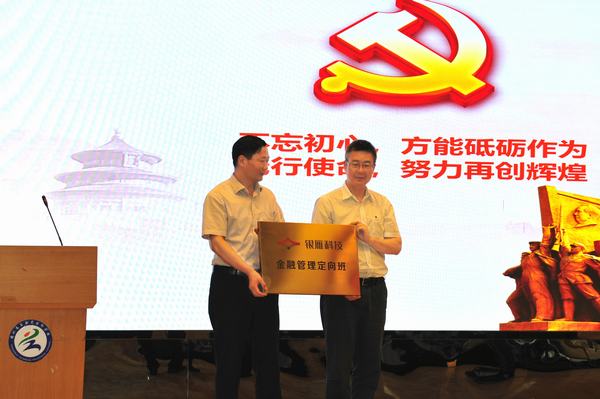 为进一步推动校企合作,大力发展教育事业,充分利用校企双方资源,为企业培养既有良好职业素质又具较高专业实践能力的综合应用型人才,为学生高质量的就业服务,促进地方经济发展,6月19日下午,政府牵头、企业参与、校企合作模式下的银雁金融管理定向班正式成立。扬州广陵新城党工委委员、管委会副主任俞斌、苏州银雁公司总经理巫晓明、学校纪委书记赵杰出席仪式并为班级揭牌。招商银行扬州信用卡中心、交通银行扬州金融服务中心、恒丰银行扬州分行等部门领导应邀参加仪式,经贸旅游系党支部书记张雪梅及部分师生代表观摩活动。