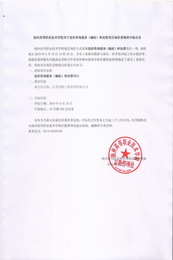 造价咨询服务(编标)和决算项目询价采购的中标公告