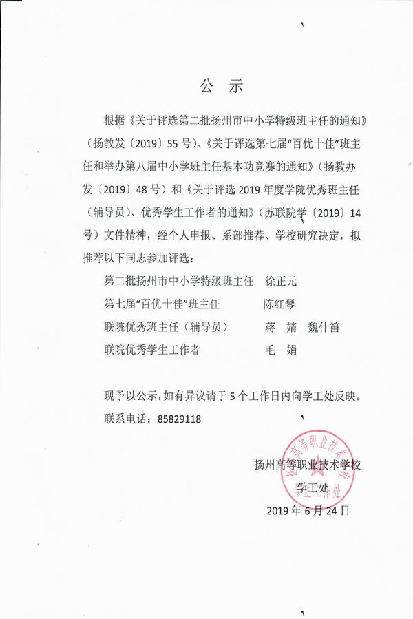 第二批扬州市中小学特级班主任等拟推荐人选公示