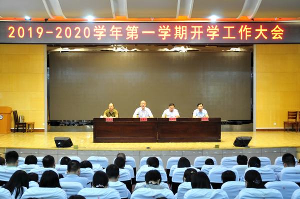 8月24日上午,学校在报告厅召开2019-2020学年第一学期开学工作大会,校领导陈大斌、徐荣宽、强玉龙、赵杰出席会议,全体教职工参加会议,会议由校长陈大斌主持。