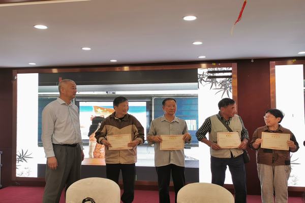陈大斌和赵杰为提供优秀作品的教师拍摄者们颁发证书和奖品。团委组织学生给教师们制作贺卡、说祝福话、诵读古诗词,并制作微视频现场播放。老同志们吃着重阳糕、品着佳肴,欣赏着视频祝福画面,欢声笑语,其乐融融,共忆往昔峥嵘岁月。