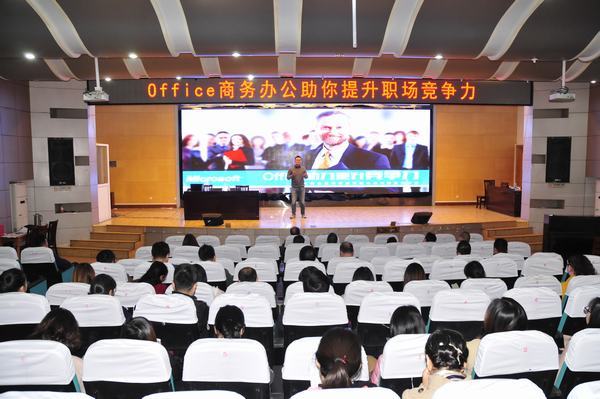 为提升学校师资队伍信息素养,提升教师信息化教学辅助手段使用能力,11月14日下午,学校特邀微软MOS金牌讲师刘亚作了一场题为《Office商务办公 助你提升职场竞争力》的讲座。讲座由强玉龙副校长主持,近200名教师参加讲座。