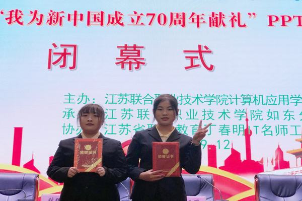 比赛共设有两个阶段:20日下午在180分钟内现场制作PPT、21日上午在10分钟内展示PPT作品及演讲。我校唐清华和任心灵两位同学在蒋婧老师的指导下,赛前做了充分的准备,从“新中国成立”“历史回顾”“展望未来”三个方面对新中国成立70周年以来取得的巨大成就进行了完整的阐述。两位同学现场制作分工明确,配合默契,整个作品内容完整、结构合理、界面美观,有较强的表现力和感染力。任心灵同学脱稿演讲、自信从容,表现出新一代青年应有的激情与昂扬,在专家评委面前很好地展示了我校学子的风采,得到了评委的好评,最终获得了二等奖的好成绩。