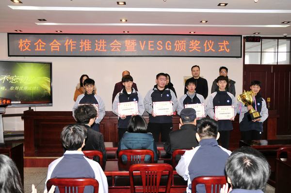 12月31日下午,学校在行政楼501会议室举行校企合作推进会暨VESG颁奖仪式,江苏星源娱乐文化发展有限公司董事长周慧悦、总经理陈立、总监李训亿,学校副校长强玉龙、电子工程系负责人及电子竞技运动与管理专业全体学生参加活动,活动由电子工程系主任黄静萍主持。
