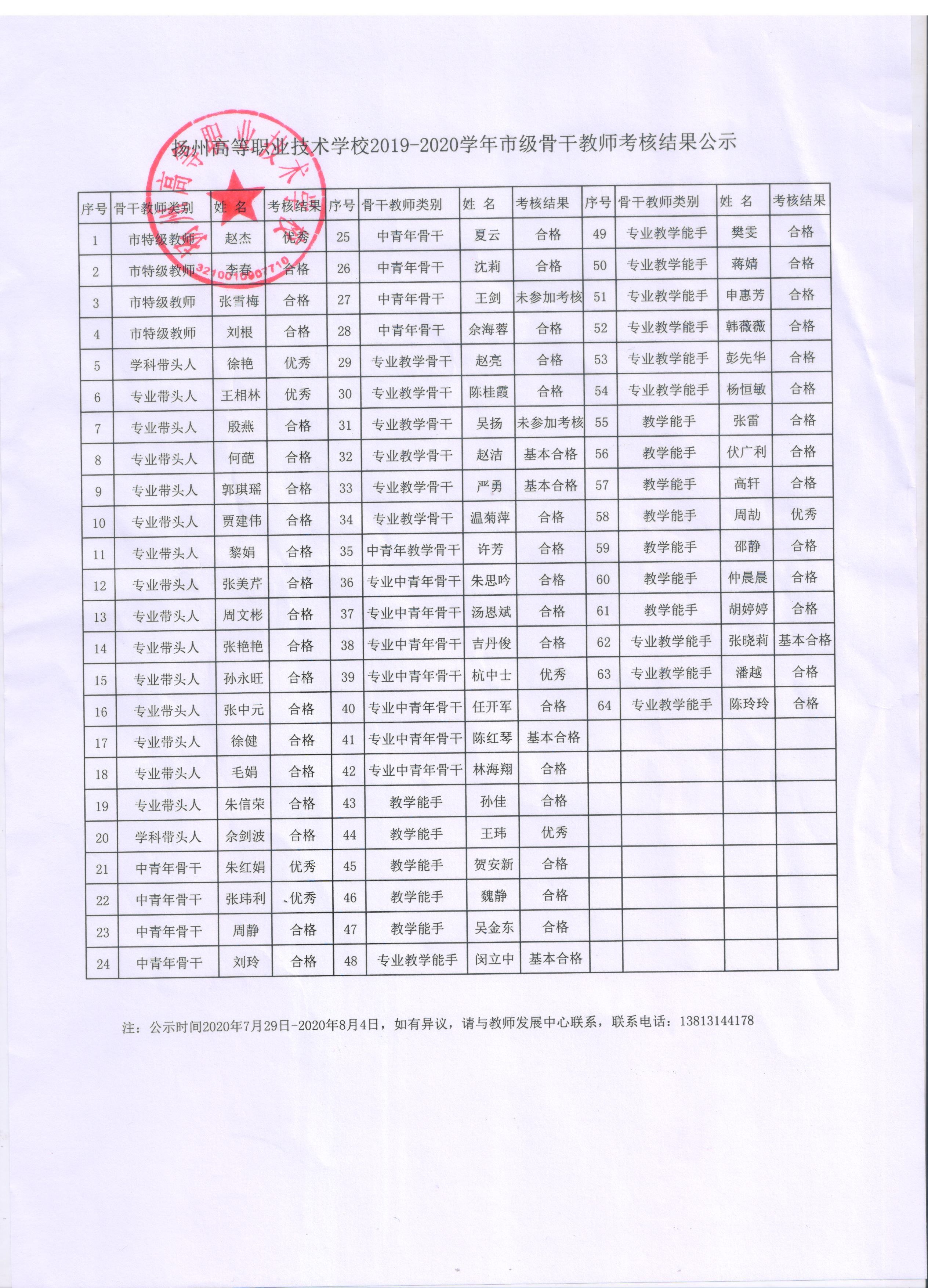 2019-2020学年市级骨干教师考核结果公示