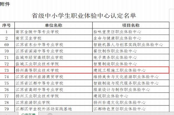 近日,2019年省级中小学生职业体验中心认定工作结果揭晓,建筑与环境工程系“建筑工程施工职业体验中心”经过自我测评、市级推荐,省教育厅组织专家审核并网上公示程序,被认定为省级中小学职业体验中心。
