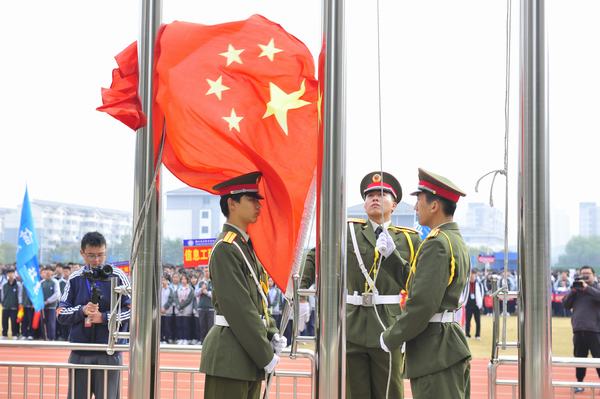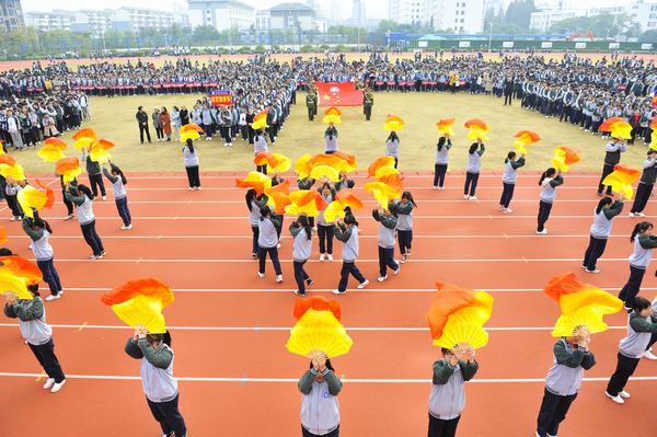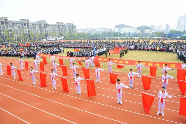 庄严的升国旗仪式之后,党委委员、副校长徐荣宽致开幕词,向本届运动会的召开表示热烈的祝贺,向为大会的召开精心准备的老师、同学表示衷心的感谢,向本次大会的裁判员、教练员、运动员表示崇高的敬意。他表示,体育从来都是人类社会的兴奋点,也是热血青年张扬个性、展示风采的舞台。在全面实施素质教育的今天,体育教学工作已经摆在重要位置。学校高度重视体育工作,标准的400米跑道,崭新的篮球场,即将拔地而起的体育馆,为学校师生体育工作提供了更好的条件和保障。他强调,运动会既是对师生们运动水平的一次全面检阅,更是学校精神风貌的一次集中展示。全体运动员要以奥运健儿为榜样,以饱满的激情、昂扬的斗志、团结的精神投入到本届运动会中去,赛出风格,赛出水平,赛出精气神。希望全体师生以本届运动会为契机,进一步强化体育运动意识,让运动成为习惯,让活力带动生活,进一步打造快乐学习、健康工作、幸福生活的校园新坏境。