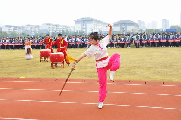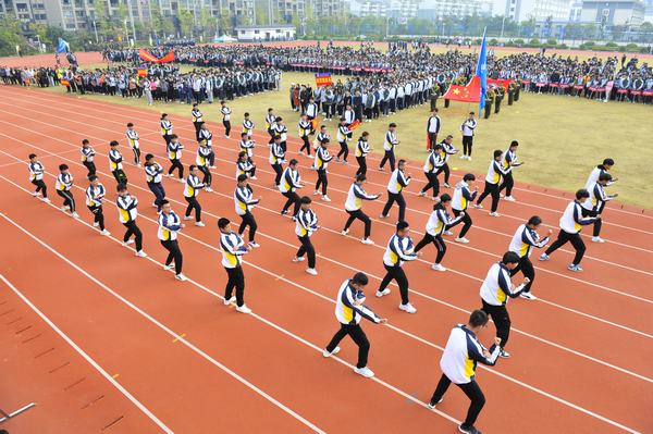 开幕式上还举行了大型文体表演。太极拳、军体拳、彩旗操、扇子舞、古典舞、诗朗诵,各系部表演方阵带来的表演各具特色、精彩纷呈,向全校师生展现了青春活力,点燃了运动激情。在一声号令枪响中,运动会正式拉开帷幕。