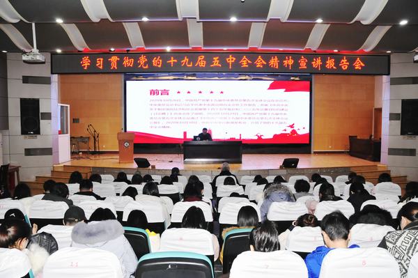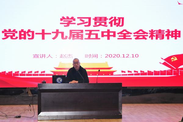 12月10日下午,学校举行学习贯彻党的十九届五中全会精神宣讲会,党委副书记、校长陈大斌主持活动,党委副书记、纪委书记赵杰作宣讲报告,全体教职工参加活动。