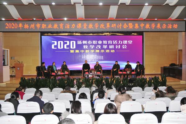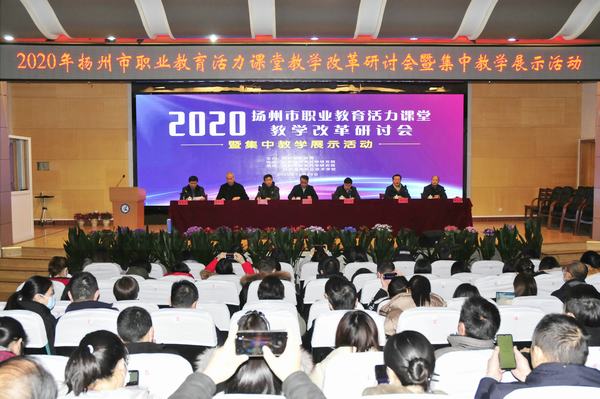 12月29日,2020年扬州市职业教育活力课堂教学改革研讨会暨集中教学展示活动在学校举行,来自全省13个地市的200多名教师齐聚一堂,现场观摩扬州职业教育活力课堂。江苏教育科学研究院职教所副所长陈向阳,扬州市委教育工委副书记、学校党委书记王朝勃,市教育局职社处韩国志处长,扬州市教育科学研究副院长王恒富,扬州市教育科学研究院职教教研室主任陈金国,学校校长陈大斌,副校长强玉龙出席启动仪式。仪式由陈金国主持,陈大斌致欢迎辞。