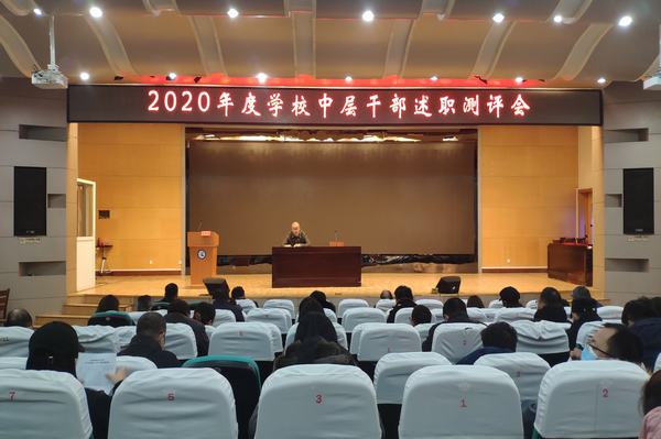 1月18日下午,学校2020年中层干部述职及民主测评会在报告厅召开,校领导班子成员、全体中层干部、各系部秘书、辅导员及教师代表参加会议,会议由党委副书记、校长陈大斌主持。