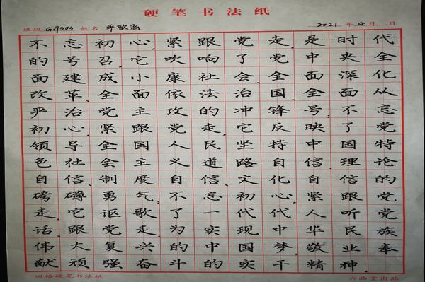 为迎接中国共产党成立100周年,深入贯彻习近平总书记系列重要讲话精神,教育引导学生了解党的光辉历史、感悟党的初心使命,传承党的红色基因,坚定不移跟党走,由学校团委主办、建筑与环境工程系团总支承办,面向全校学生开展“不忘初心 紧跟党走” 主题书法作品(软笔、硬笔)大赛。