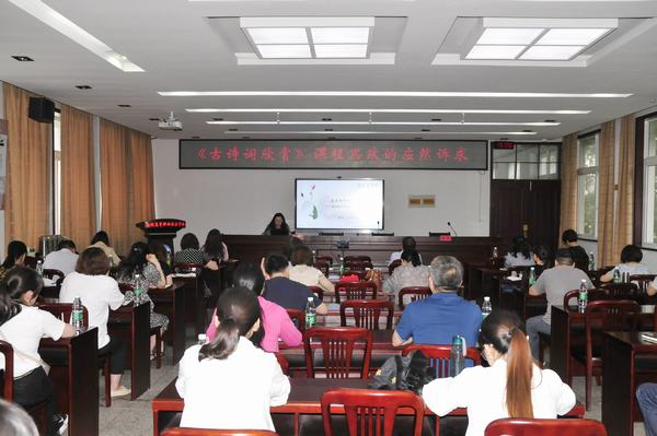 10日下午,江苏省特级教师、正高级讲师、南京中华中专陈莉老师作《吟一阙诗词,赏千古芳华——〈古诗词欣赏〉课程思政的应然诉求》讲座。她从大语文的角度出发,引领老师们从语文核心素养培养到课程目标设定,到诗歌教学设计,再到思政点的挖掘进行系统把握。现场的老师们跟随她一起寻访“诗心”,在明月清风的诗意中,感受中国传统文化的魅力。语文课程协作组秘书长陈英主持讲座,协作组副组长沈晓昕教授作精彩点评。