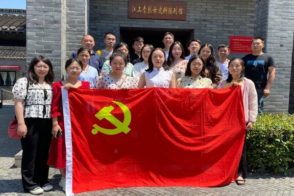 6月22日上午,建筑与环境工程系全体党员、入党积极分子、优秀学生团员和党员志愿服务队(党组织)结对共建单位扬州润泰质量检测有限公司党员代表一行来到红色教育基地——江上青烈士史料陈列馆。
