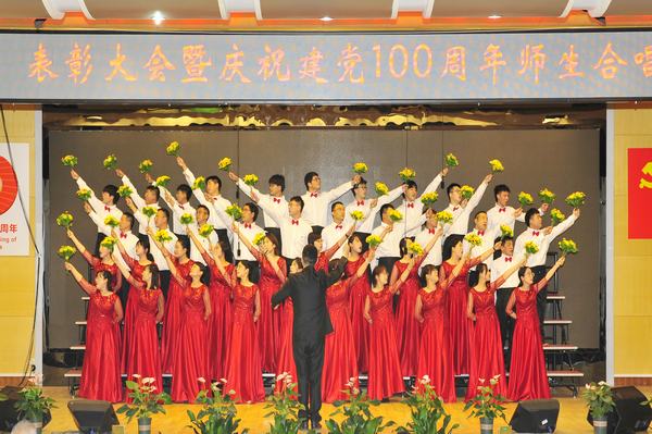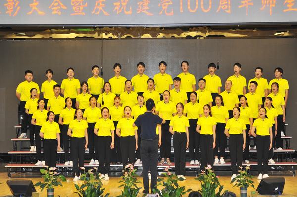 为推进学校党史学习教育进一步落实落细,为中国共产党建党100周年深情献礼,6月25日下午,学校举行了“七一”表彰大会暨庆祝建党100周年师生合唱大赛,歌唱天翻地覆慨而慷的伟大今朝,歌唱不畏浮云遮望眼的一往无前。