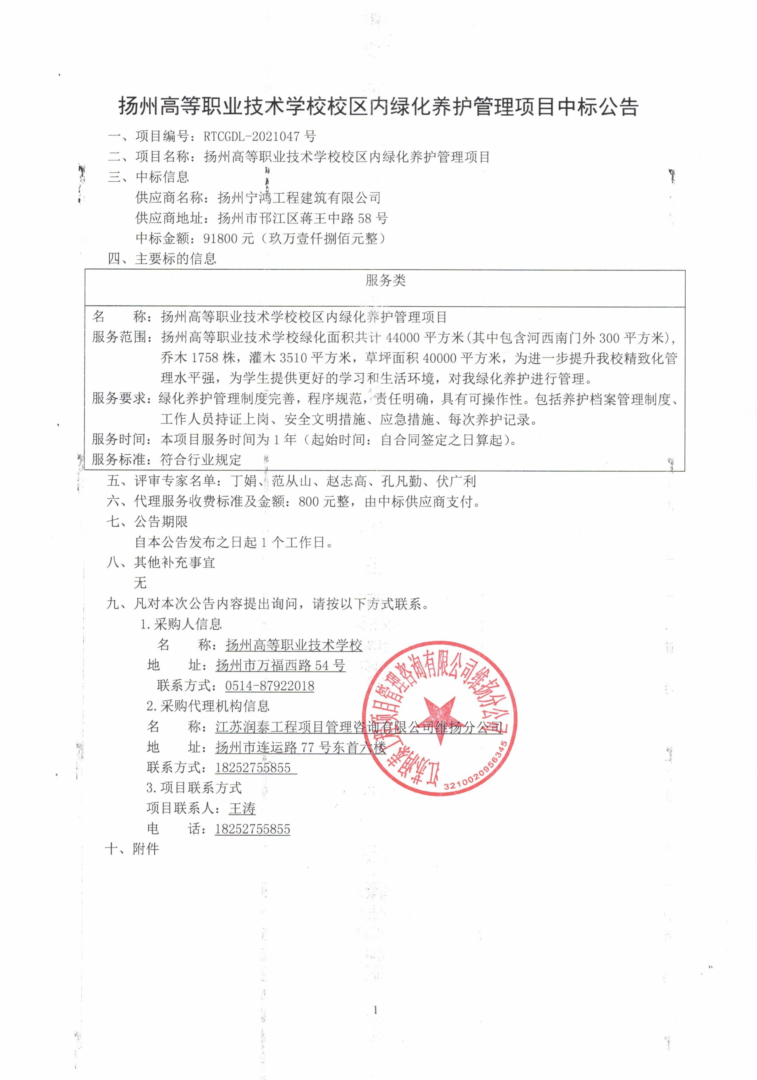 绿化养护管理项目中标公告