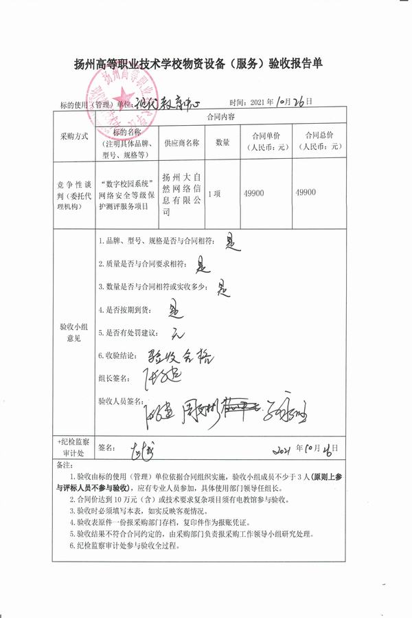 “数字校园系统”网络安全等级保护测评服务项目验收报告