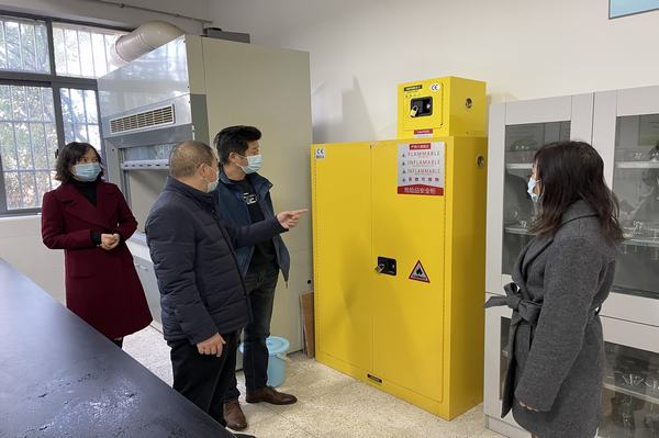 为全面贯彻落实市政府办公室下发的《扬州市学校实验室危险化学品使用安全专项治理行动实施方案》(扬府传发〔2020〕135号),有效遏制和杜绝此次南航将军路校区材料实验室爆炸类似安全事故的发生,按照学校要求,11月9日下午,建筑与环境工程系副主任杨贤梅和校企合作联络人贺安新老师在系部主任李春的带领下专门到驻校企业——扬州市润泰工程质量检测有限公司开展学校危化品安全专项排查工作。