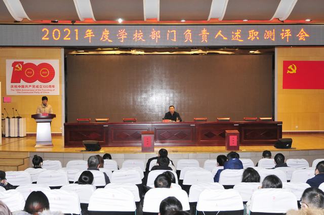 2021年是全校上下团结一致、砥砺奋斗的一年,也是学校各项事业迅速发展的一年。一年来,全校上下紧紧围绕学校重点工作思路,齐心协力,扎实苦干,在党史学习教育、疫情防控、领航学校建设、文明城市创建、学校基础建设、专业建设、师德师能建设等方面取得了积极的成效,向广大师生交上了一份满意的答卷。学校各项事业的发展离不开一支想干事、能干事、会干事、干成事的干部队伍,一年一度的述职测评会,让各部门负责人对过去一年的个人履职情况和部门各项重点工作完成情况进行全面、客观的分析总结,同时促进学习交流、取长补短,更好地推动2022年各项工作再创新的佳绩。(文/申惠芳 审稿/殷燕 纪礼达)