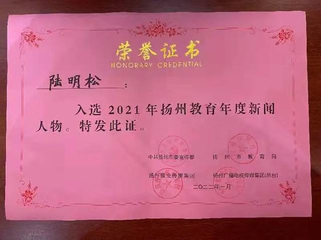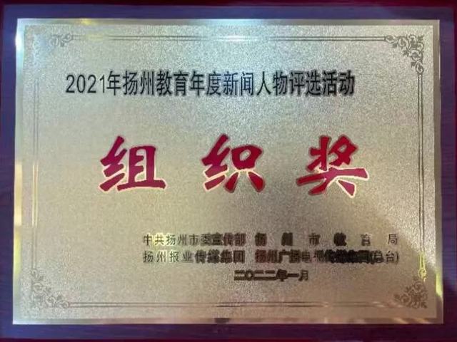 1月14日下午3点,2021年扬州教育十件大事揭晓暨年度新闻人物颁奖典礼在扬州市教师发展学院举行。我校学子陆明松经过海选、初评、复评、终评等环节,并参考了网络微信投票,最终脱颖而出,入选“2021年扬州教育年度新闻人物”,学校获组织奖。