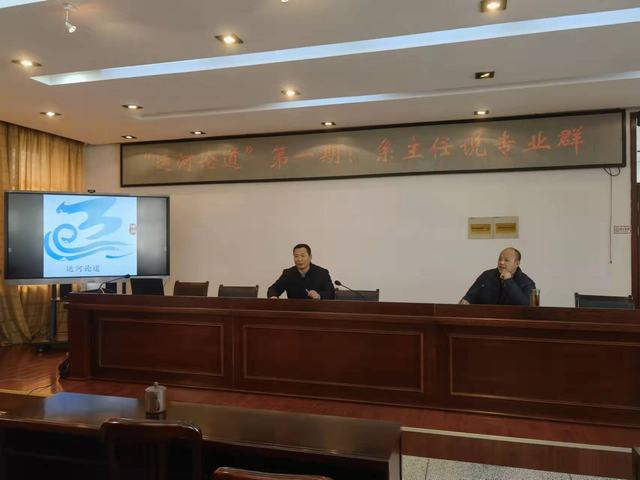 为贯彻落实中办、国办印发的《关于推动现代职业教育高质量发展的意见》,加快构建与地方支柱产业和战略新兴产业高度吻合的专业体系, 1月19日下午,学校在行政楼五楼会议室开展了“运河论道”系列活动第一期——“系主任说专业群”活动。学校党委副书记、校长赵杰到会指导,教务处处长李翔宇、各系系主任、教学主任、教学秘书、教研室主任等40余位教师到场参加了活动。活动由校党委委员、副校长强玉龙主持。