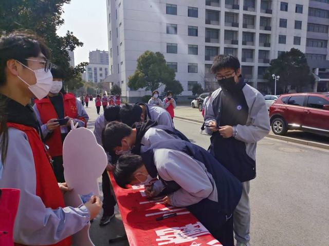 志愿者们通过手举牌、喊口号的方式提醒同学们做好防疫。宣传过程中,志愿者们分工协作:有的手举宣传牌,有的宣传劝导同学们规范佩戴口罩,有的将口罩递给未佩戴的同学,并向他们宣传防疫知识,说明佩戴口罩的必要性。志愿者们一边发放口罩,一边宣传戴口罩的重要性,强调佩戴口罩是阻断空气中的病毒、细菌、飞沫的有效途径,提醒师生出门要佩戴口罩。活动期间人头攒动,现场气氛热烈。同学们积极参与,签署承诺。活动结束后,同学们合照留念。