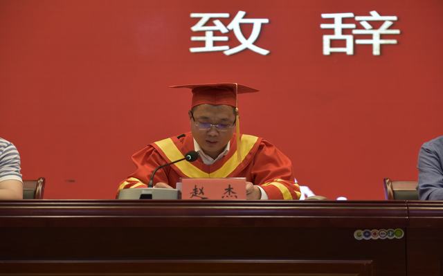 赵杰致辞,他对获得学士学位的219名毕业生表示祝贺,希望大家知行合一,不懈进取,踏实工作,砥砺前行,用责任与担当书写无愧于时代、无愧于青春的奋斗之歌。