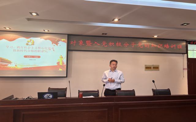 经贸旅游系党支部副书记王剑为学员们带来了两场讲座,分别以“党的性质、目标和指导思想”和“学习、践行社会主义核心价值观做新时代合格的职业人”为主题。讲座中,王剑讲述了中国共产党成立从建立到发展壮大的整个历史进程、党的性质、目标和指导思想等丰富的理论知识。