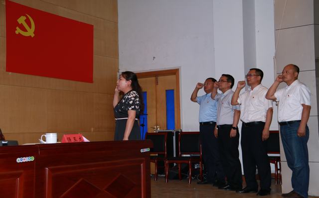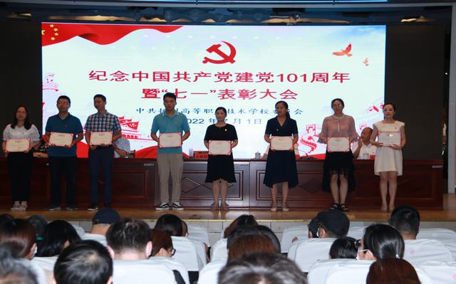 经贸旅游系党支部朱玲、建筑工程系党支部滕玉娟分别代表优秀党务工作者和优秀党员发言。会议还举行了重温入党誓词仪式,副校长徐艳担任领誓人,带领党员们在党旗下庄严宣誓,重温入党誓词。
