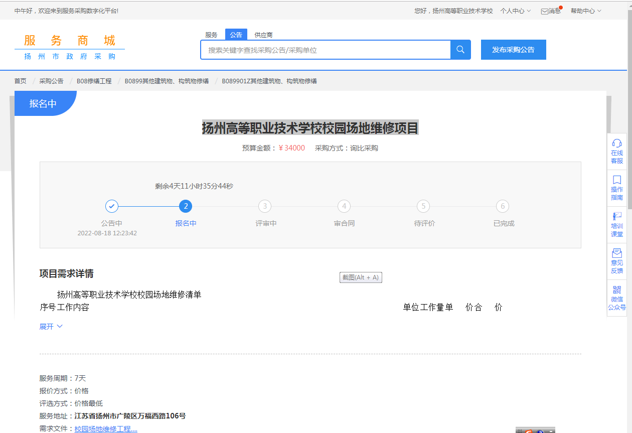 该项目已挂扬州市政府采购服务商城:https://cg.zbj.com/detailsDemand?id=14fab03522d04d71b680a1aef44d64cb
