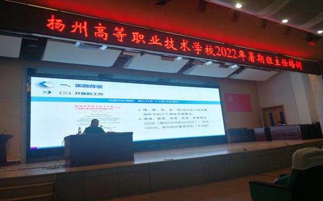23日上午,培训首先采用线上方式进行,全体班主任在报告厅一起在线学习了中国职教学会德工委常务副主任、江苏省职教学会德工委副主任兼秘书长章宏所作的《“班级建设方案”的撰写与评价》专题讲座。他从班主任能力大赛评选的视角,精细讲述了班级建设方案的内涵、总体要求、撰写方案的准备、班建方案各部分的评价要点。并以优秀的班级建设方案《青云之家,绽放“艺美”人生》为例,分析优点,展示长处,为班主任的班级建设提供学习范例。(照片5)接着,沈莉简要介绍了全国职业院校技能大赛中等职业学校班主任能力比赛方案,总结了我校领航创建中德育模块取得的进展和成就,详细部署了我校学生综合素质评价工作的实施方法,提出按照学校《学生综合素质评价实施方案(试行)》,新学期开始全面启动实施,逐步完善五年制高职学生综合素质评价体系,形成长效机制,努力构建五年制高职教育高质量人才培养体系。