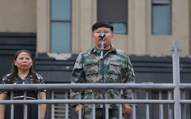 总教官黄兴林进行军训总动员。他向同学们提出三点要求:一是要端正思想,认真对待;二是要刻苦训练,克服娇气,敢于跌倒滚爬;三是要在注意自身安全的情况下完成军训。