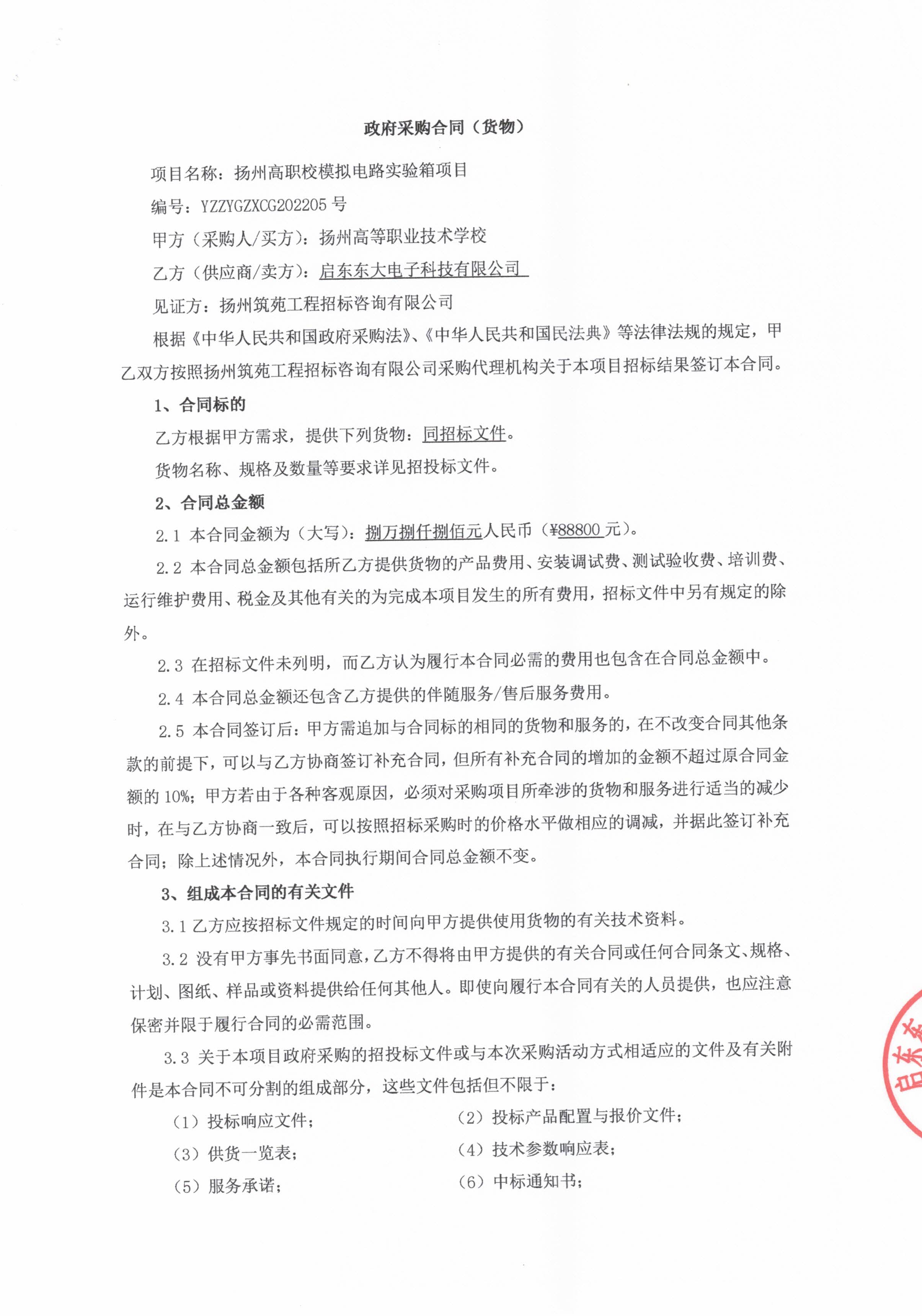 模拟电路试验箱项目委托采购合同