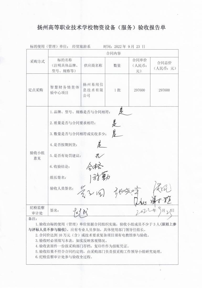 经贸旅游系智慧财务情景体验中心项目验收报告单