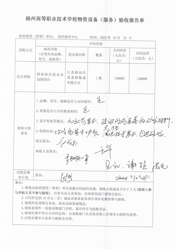 现代教育中心网络和信息安全加固项目验收报告单