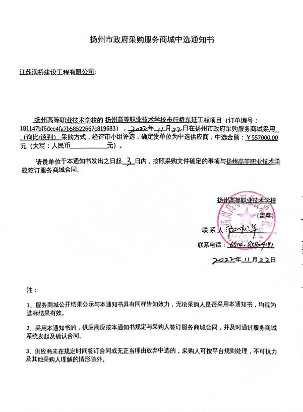 bat365官网登录步行桥东延工程中标公告