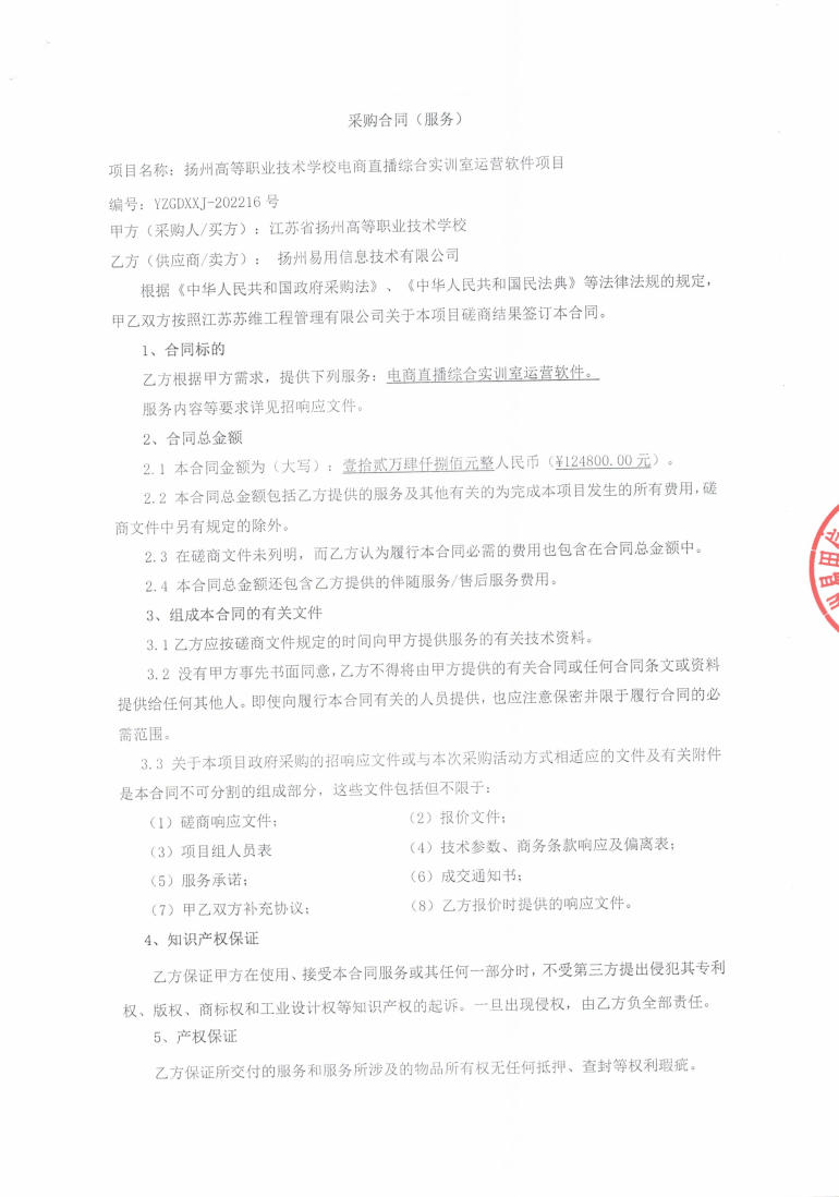 bat365官网登录电商直播综合实训室运营软件项目采购合同(服务)