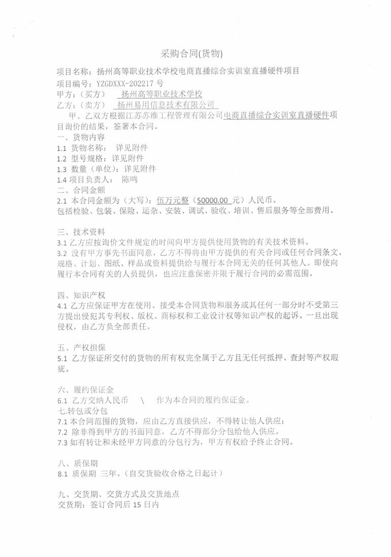bat365官网登录电商直播综合实训室直播硬件项目采购合同(货物)