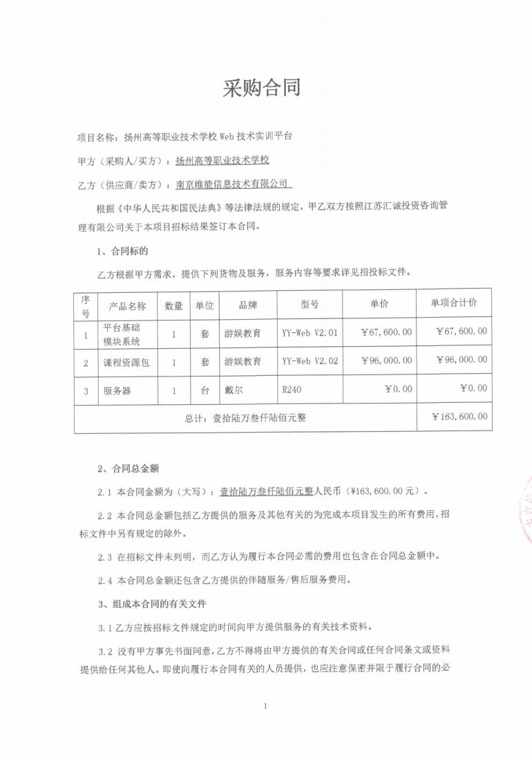 bat365官网登录Web技术实训平台采购合同