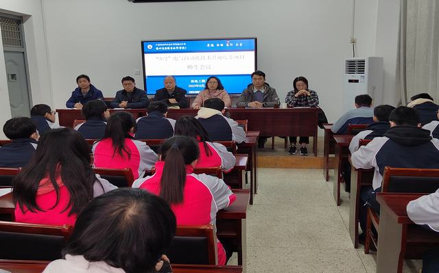 2月23日下午,电气自动化技术-自动化技术与应用“5+2”贯通培养项目(以下简称“5+2”贯通培养项目)师生专题工作会议在弘毅楼302会议室召开。机电工程系领导、班主任、部分任课老师、班级全体学生参加会议。副校长强玉龙、教务处处长万阿平出席会议并讲话,会议由系副主任赵亮主持。