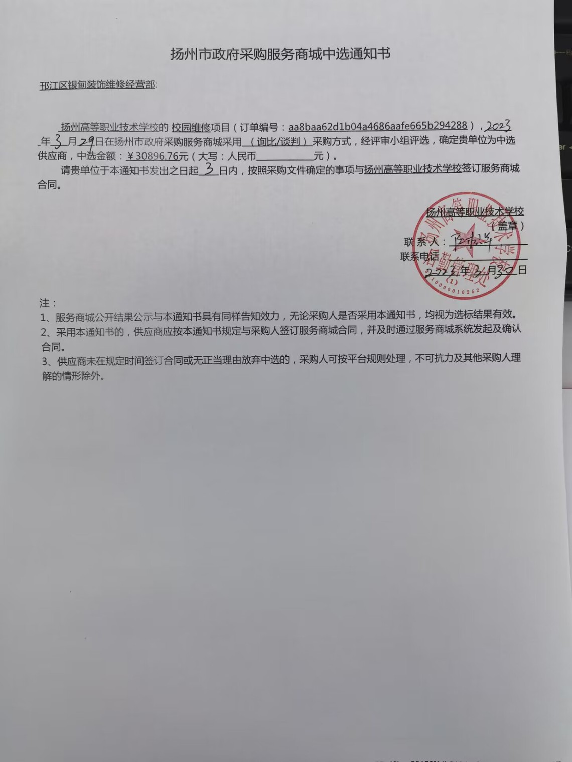 校园维修项目中标公告