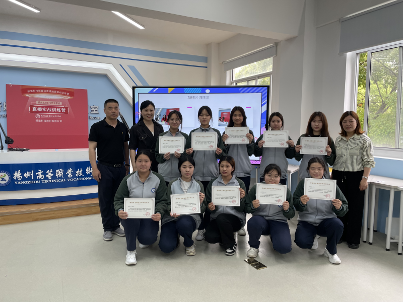 经贸旅游系主任殷燕对整个活动给予了高度评价。她表示,本次活动同学们始终保持着高度的热情,实践了直播运营团队中的各个岗位,同学们的紧密协作、积极主动配合,本次活动取得良好的成绩。同时,殷燕对新道科技、扬州冠华信息技术有限公司的大力支持表示感谢。此次电商直播实战活动是校企双方对引企入校、引产入校、引课入校、引师入校的新型学徒制的成功尝试。参加此次实训课程的同学们均获得了《新媒体直播带货训练营结业证书》,参加首次直播带货的团队还颁发了《新媒体直播运营师初级认证证书》。
