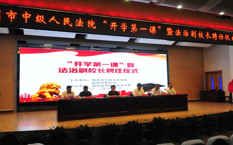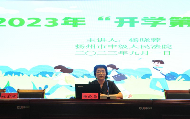 为推动习近平法治思想学习宣传,深入推进平安校园、法治校园建设,增强学生法治观念,提高学生法律意识,提升学生“学法、用法、尊法、守法”的法治意识,健全学生权益保护机制,完善学校治理体系,促进未成年人健康成长。9月1日下午,扬州市中级人民法院在我校举行“开学第一课”暨法治副校长聘任仪式。扬州市中级人民法院院长杨晓蓉被聘为我校法治副校长,同时带来新学期第一节法治课。