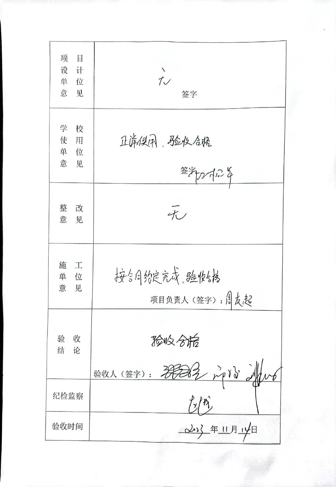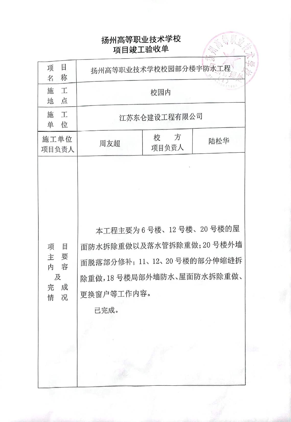 校园部分楼宇防水工程项目竣工验收单