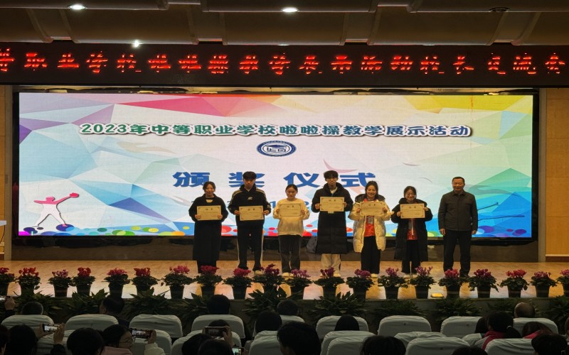 11月25日,2023年中等职业学校啦啦操教学展示活动落下帷幕,闭幕式在学校报告厅举行。本次啦啦操比赛分为6个单项赛及团体赛,各省(地市)推选队伍参赛,共有8省市近220名人员参加本次活动。
