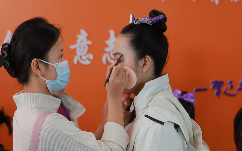 来自南京市玄武中等专业学校人物形象设计专业的同学在赛场设立了专业展示台,呈现专业学习学生作品,并发挥专业所长为所有啦啦操比赛的队伍提供免费的专业跟妆服务。职教学子用实际行动践行技能点亮人生,匠心铸就梦想。