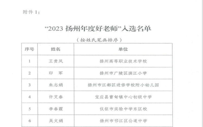 为进一步推进全市教育系统师德师风建设,树标杆、立榜样,引导广大教师争做“四有”好老师和“四个引路人”,弘扬教育系统正能量,大力营造尊师重教的浓厚社会氛围,市教育局开展了“2023扬州年度好老师”推评活动,我校王贵凤老师当选“2023扬州年度好老师”。
