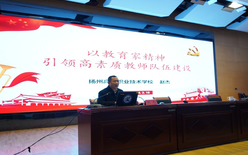 随后,赵杰以《以教育家精神引领高素质教师队伍建设》为主题作专题讲座。讲座从教育家精神的源起、教育家精神内涵及培育教育家精神的重要意义三个方面进行阐述。赵杰指出,作为教师必须依托教育教学工作、基于自身教学生活才能不断培植自身的教育家精神。赵杰强调,要充分认识到弘扬教育家精神不仅是教育家和优秀教师典型的事情,更是每一位教师的行为准则和奋斗方向,不仅仅存在于高大上、轰轰烈烈的事迹中,也体现在持之以恒对学生的关爱上,自觉将大家的精神转化为小我的行动。